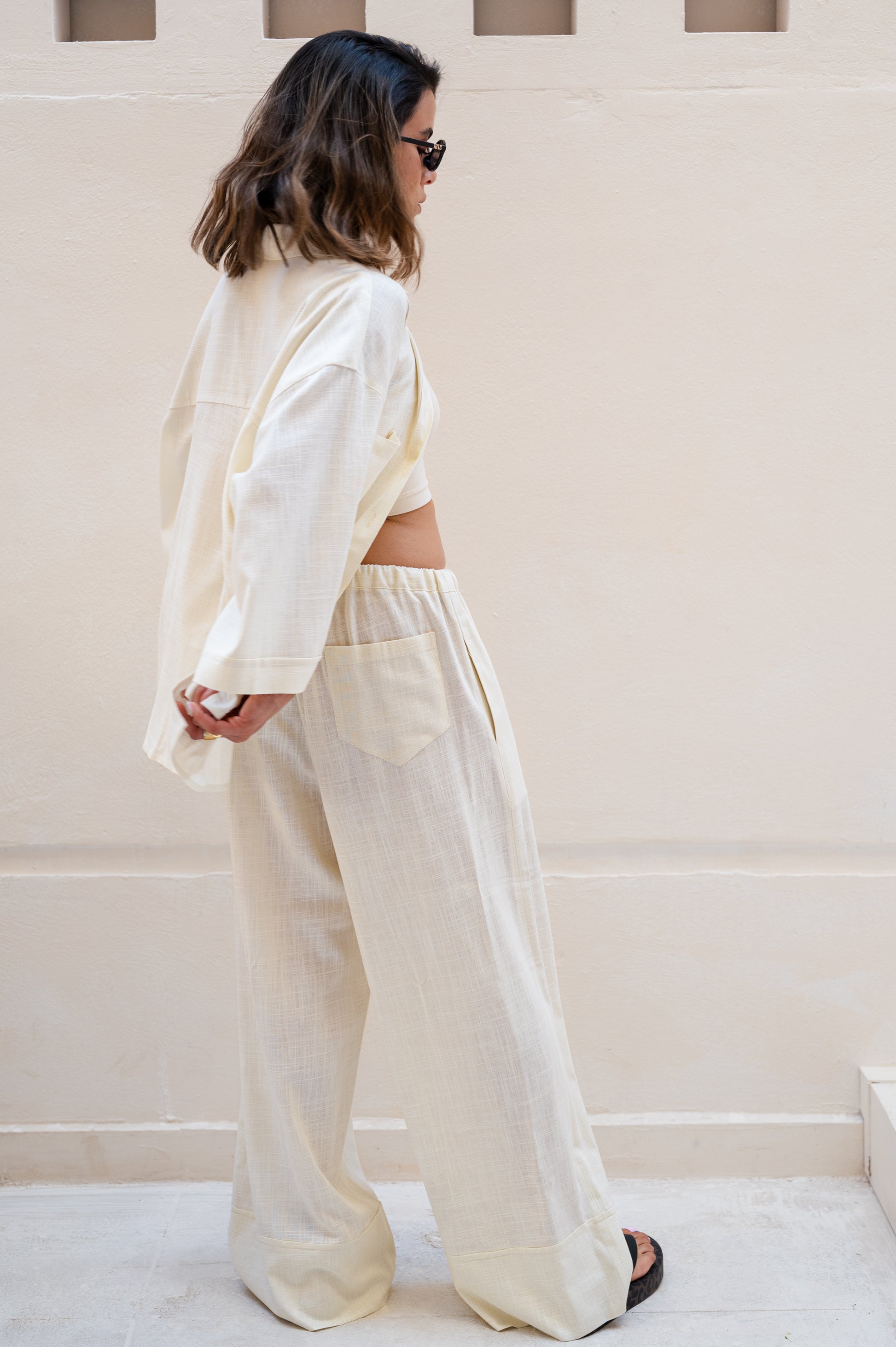 Breezy, elegant, and undeniably comfortable — The Iris Pants are made for movement and ease. These full-length trousers are crafted from a lightweight, semi-sheer cotton-blend fabric that feels soft on the skin and keeps you cool in warm weather.